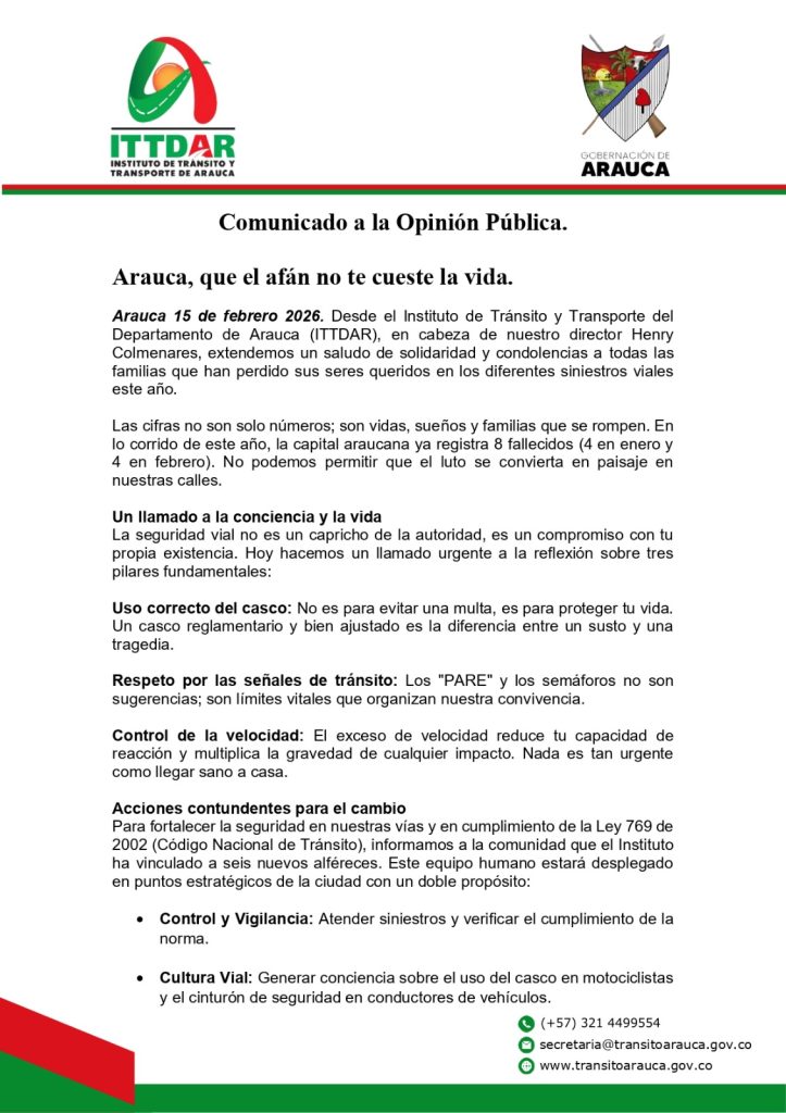Las cifras no son solo números; son vidas, sueños y familias que se rompen. En lo corrido de este año, la capital araucana ya registra 8 fallecidos (4 en enero y 4 en febrero). No podemos permitir que el luto se convierta en paisaje en nuestras calles.