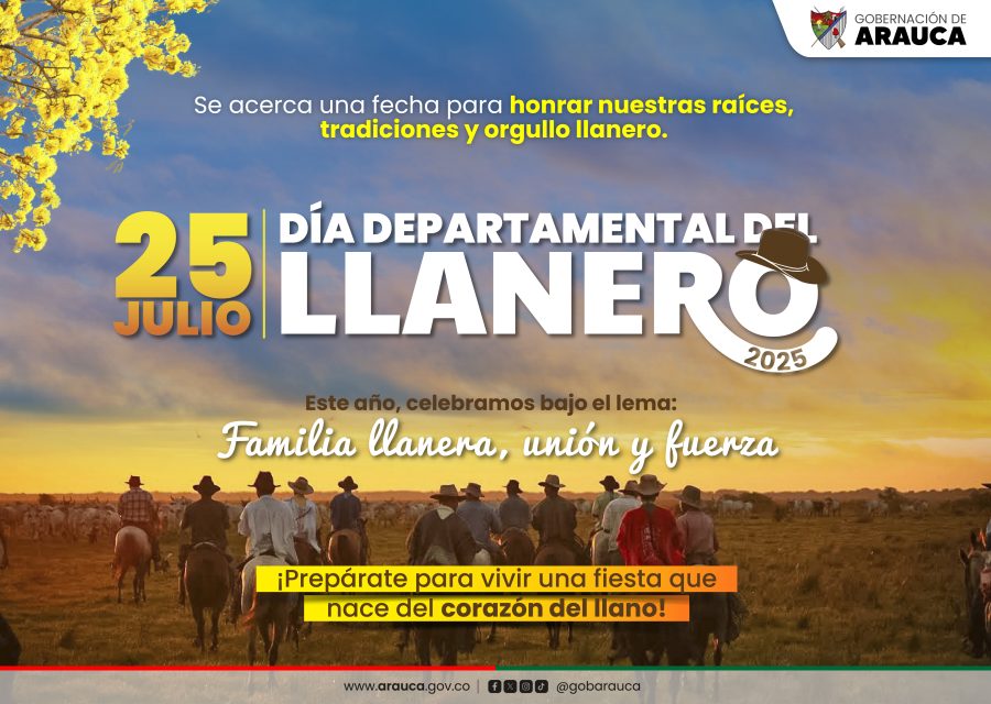 La Gobernación de Arauca, a través de la Oficina Asesora de Cultura y Turismo, invita a la comunidad a participar en la conmemoración del Día Departamental del Llanero, que se celebrará el próximo 25 de julio. Esta fecha reconoce la profunda influencia de la familia llanera en la historia, cultura y desarrollo del territorio.