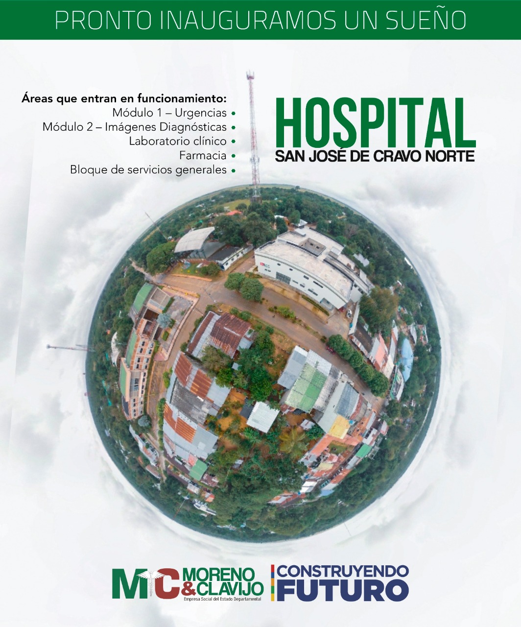 El Gerente de la ESE Moreno y Clavijo, Wilder Ortiz, indicó que el hospital San José de Cravo Norte entrará a funcionar el próximo viernes 10 de julio.
