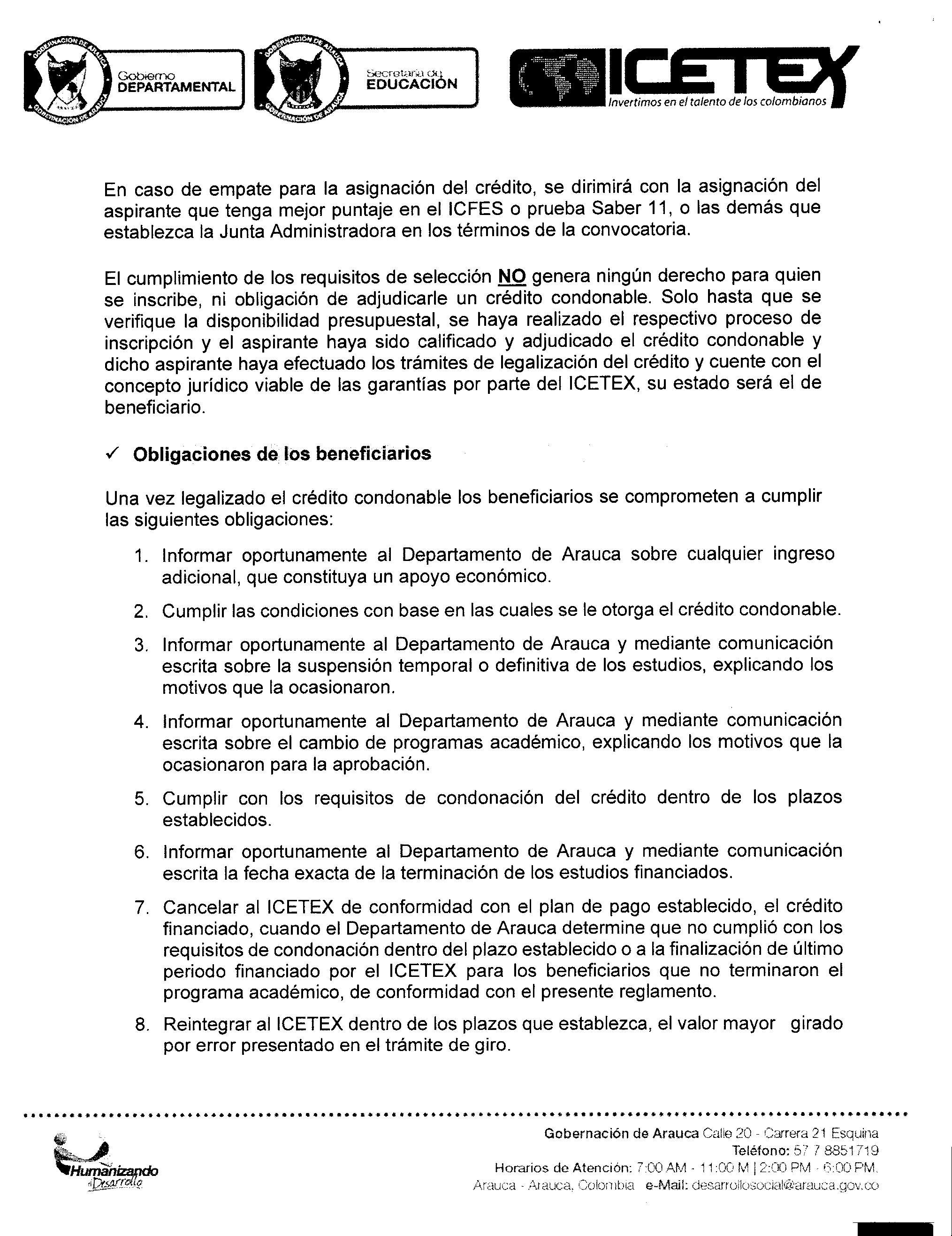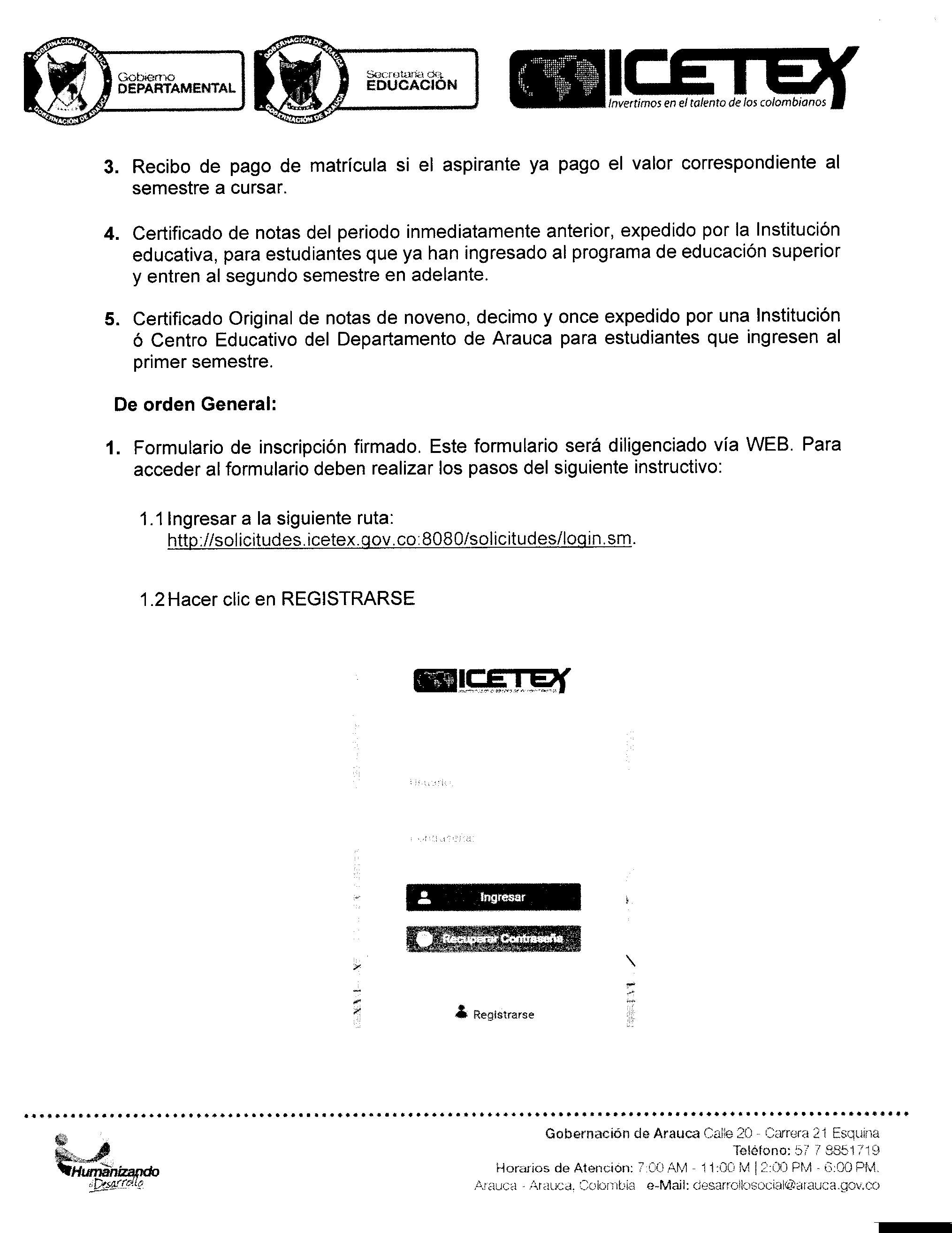 Finalmente, el documento de CONVOCATORIA puede ser descargado de la página de Facebook Gobernación de Arauca, en la cual encontraran el cronograma de proceso, requisitos y documentos requeridos para la postulación.