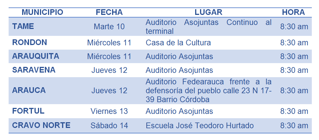 La Empresa de Energía de Arauca, ENELAR E.S.P. Informa a sus usuarios en zona rural de los municipios de Tame y Fortul, que se realizaran cortes del fluido eléctrico para adelantar trabajos de mantenimiento correctivo en las redes de distribución local, de acuerdo a la siguiente programación: