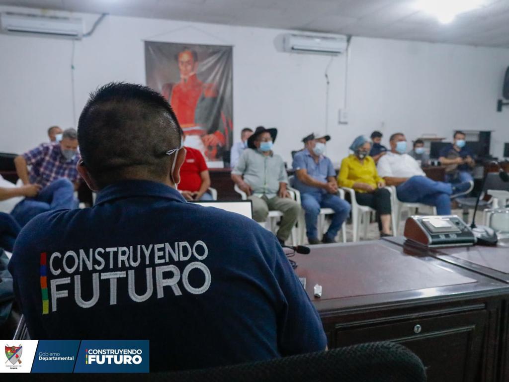 La reunión se adelanta en la sala de juntas de la administración municipal de Tame, donde asisten representantes de las comunidades de las tres localidades afectadas, la mesa directiva de la Asamblea Departamental, presidida por los diputados Wilinton Rodríguez Benavidez, Alexa Quirife y Kendy Rodríguez, el secretario de Gobierno Departamental Uriel Peña García y los alcaldes Javier Cabrera, Anibal Mendoza y el representante de la administración municipal de Arauquita.