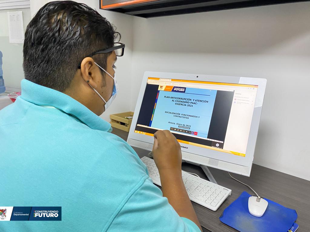 El Gobierno Departamental viene socializando desde el 14 de enero y hasta el 19 de enero, con cada uno de sus grupos de valor al interior de la entidad, el Plan Anticorrupción y Atención al Ciudadano 2021 que será adoptado mediante Decreto y publicado en la página Web www.arauca.gov.co atendiendo lo establecido en la Ley 1474 de 2011 del Estatuto Anticorrupción.