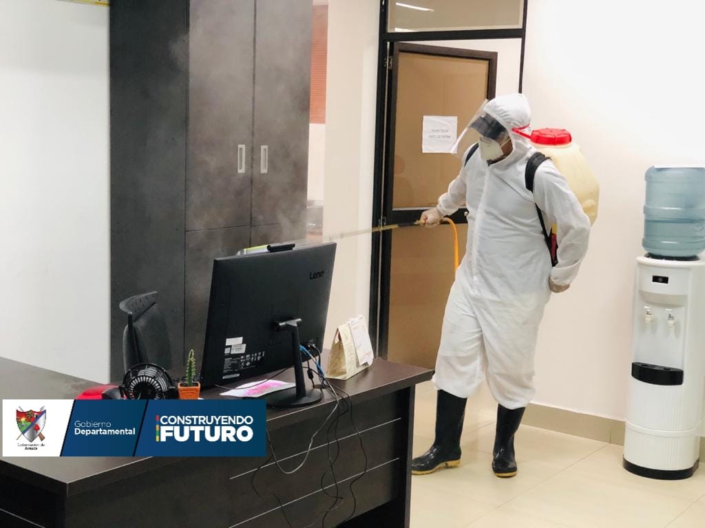 Por esta razón y en aras de salvaguardar la integridad tanto de los funcionarios que laboran en la entidad como del público en general, el área de Seguridad y Salud en el Trabajo de la Secretaría General y Desarrollo Institucional, coordinaron con la Unidad Administrativa Especial de Salud de Arauca, una jornada de desinfección al interior de cada una de las dependencias de la Administración Departamental en horas de la mañana y la tarde, se estarán realizando todos los días durante esta semana.