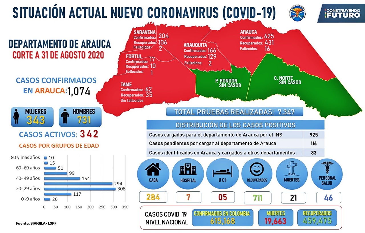 La Gobernación de Arauca informa a la comunidad en general que dos funcionarios de la entidad, resultaron positivos para covid-19 y ya les fueron aplicados los respectivos cercos epidemiológicos, trabajos que viene adelantando la Unidad Administrativa Especial de Salud de Arauca y las EPS, a la que pertenecen las personas que tuvieron contacto con los funcionarios.