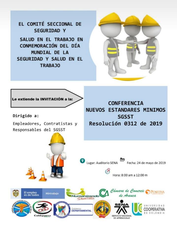 #Invitación | La Gobernación de Arauca, por medio de la Secretaría General y Desarrollo Institucional invita a asistir a la conferencia sobre Nuevos Estándares Mínimos del Sistema de Gestión de Seguridad y Salud en el Trabajo - SGSST, el cual es regido por la Resolución 0312 de 2019.