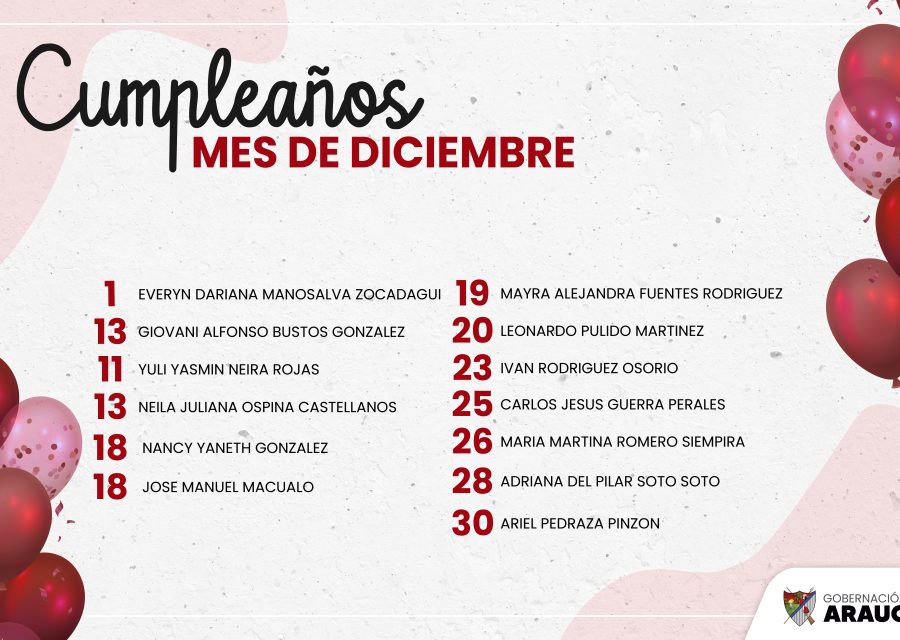 Al abrir la puerta a este último mes del año, queremos detenernos a reconocer no solo el camino recorrido durante estos meses, sino también a quienes iluminan diciembre con su presencia y añaden vida a nuestra gran familia institucional: nuestros compañeros que celebran su cumpleaños.