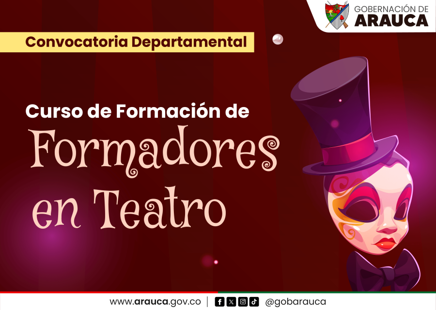 La Gobernación de Arauca, a través de la Oficina Asesora de Cultura, invita a todos los formadores en teatro del departamento a participar en la convocatoria abierta del 21 al 24 de octubre.