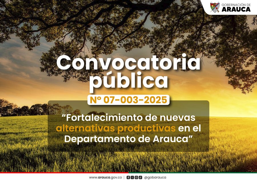 En cumplimiento de las metas del Plan Participativo de Desarrollo Departamental 2024-2027, y en ejercicio de las competencias de la Secretaría de Desarrollo Agropecuario y Sostenible, se abre la presente convocatoria pública dirigida a identificar productores rurales de los municipios de Arauquita, Saravena y Tame.