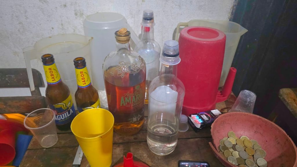 Seguidamente, en un nuevo operativo interinstitucional con la Policía Nacional, el GOA desmanteló un punto de venta donde realizan la práctica de “reenvase” en botellas recicladas y alteradas de aguardiente amarillo con bebidas artesanales, conocidas como “guarapo”, mezcladas con ron, cerveza y vodka. Prácticas ilegales que representan un alto riesgo para la salud pública y la integridad, al no contar con ninguna medida sanitaria ni registro legal de producción o distribución.