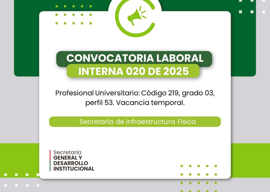 La Convocatoria Interna N.º 020 del 2025, publicada el 01 de octubre de 2025, presentó un error en el perfil convocado. En dicha publicación se indicó el Perfil N.º 55 del Manual de Funciones establecido en el Decreto 367 de 2023.