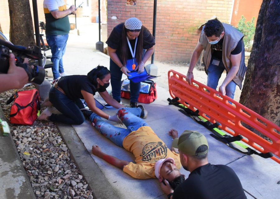 Generalmente, este tipo de simulacros se realizan tomando como base un fenómeno natural, pero en esta oportunidad, se innovó en la temática recreando un escenario que permitiera la coordinación y comunicación con otras entidades, como la fuerza pública y organismos de socorro.
